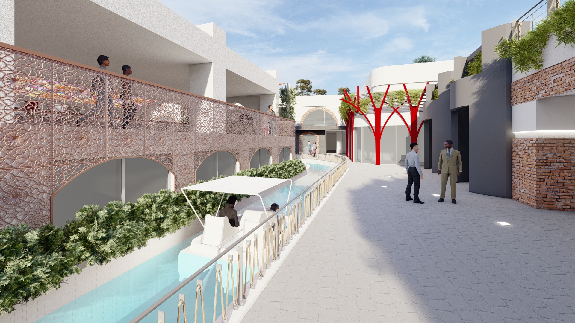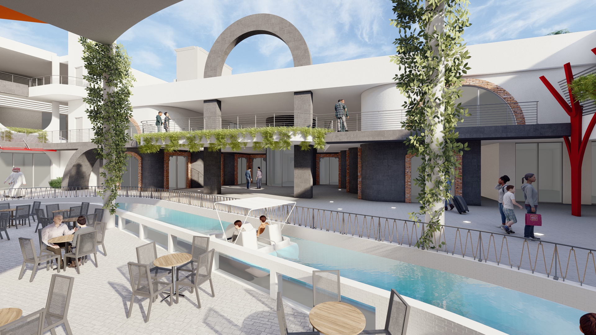 Hujrah Village initial space 15,000m² leisure designs will include a 250m long river traversing the project, equipped with paddle boats (human-powered boats).Hujrah Village is a commercial destination combining a rich heritage with a mix of modern arabian architecture, creating a fusion of tourist entertainment and shopping pleasure in one location.